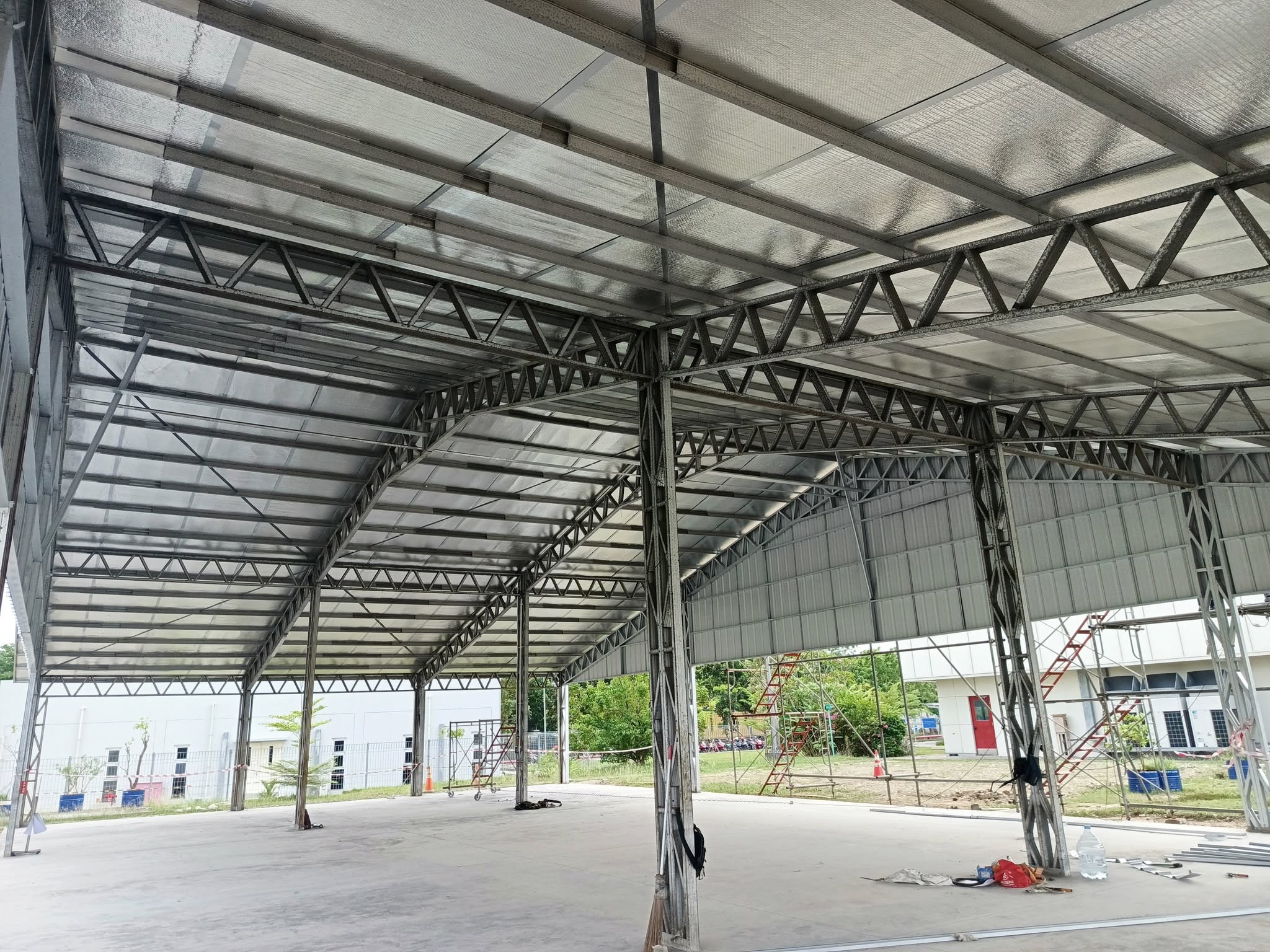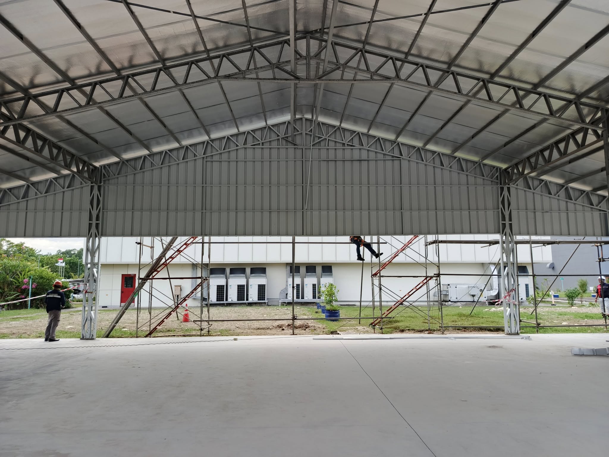 Kanopi bentangan 25m x 14m. Aluminium foil buble, dengan atap spandeck.